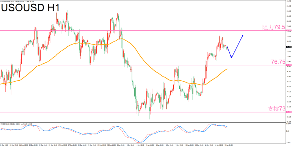 操作建议:多单:77.4-77.5美元/桶 止损77.1美元/桶之下 止盈78.9-79美元/桶