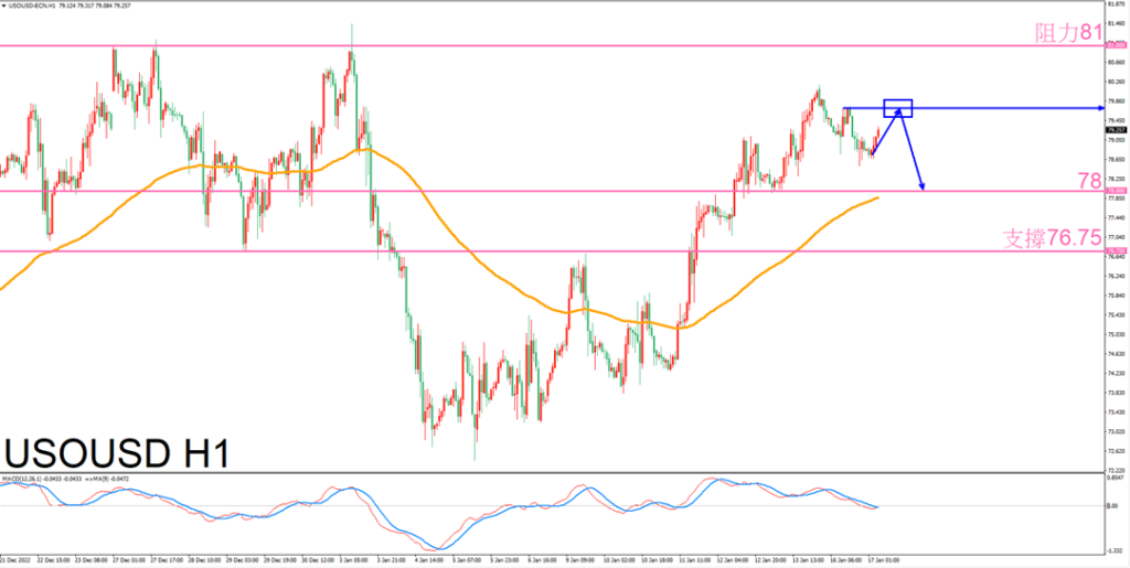 操作建议:空单:79.7-79.8美元/桶 止损80.2美元/桶之上 止盈78-78.1美元/桶