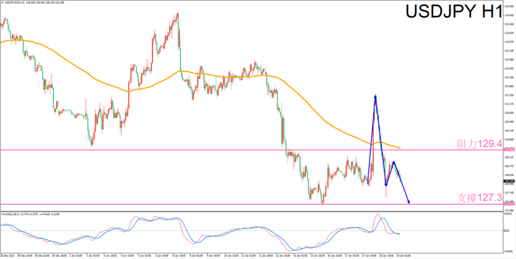 操作建议:空单:128.5-128.6 止损:129之上 止盈:127.3-127.4