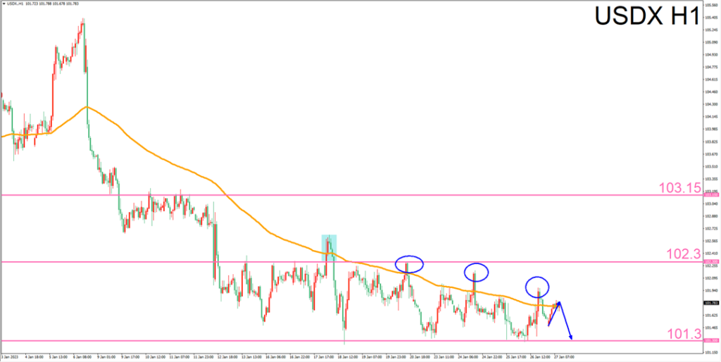 美指今日午后反弹并没有成功站上102关口,反而是开始震荡,晚间注意是否有出现反转的型态,操作上继续偏向空方,关注下方101.3位置。