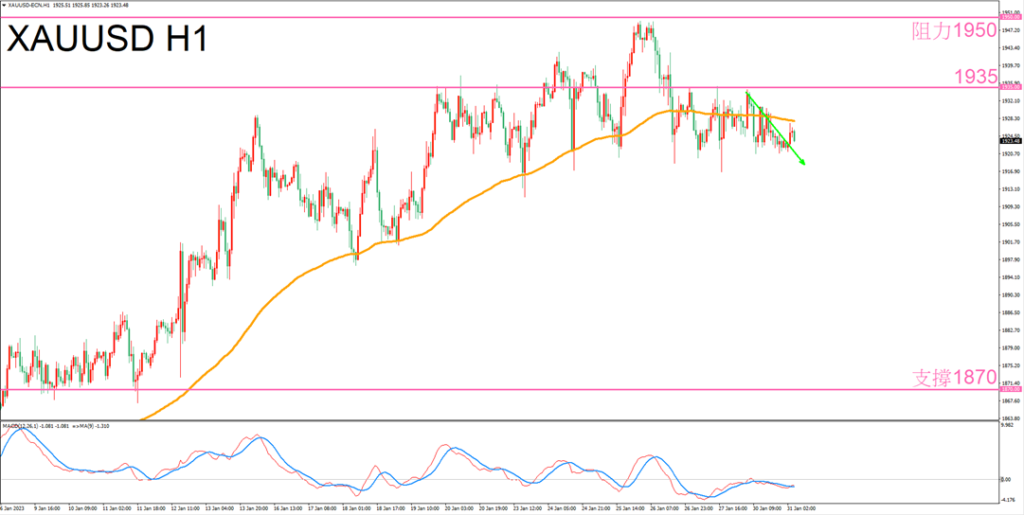 操作建议:空單:1930-1931美元/盎司 止损:1935美元/盎司之上 止盈:1920-1921美元/盎司