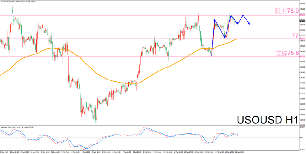 操作建议:多单:77.7-77.8美元/桶 止损77.4美元/桶之下 止盈78.5-78.6美元/桶