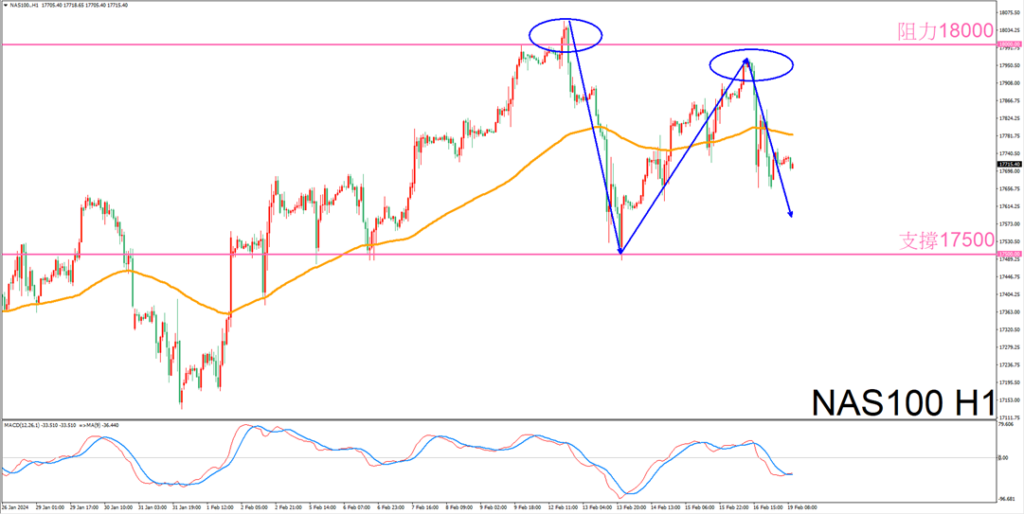 那指上周五继续下跌,高点位置有逐渐下降的状况,短在线是空方力量主导,晚间操作上以空单为主,预计会进一步下跌刷新日间新低,可关注长期均线位置,价格站不上都可以进场。