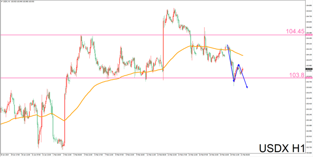 美指昨日晚间快速下挫,盘中已经跌破了上周低点位置,整体走势偏弱一些,但还是有保持在区间内,今日晚间预期在反弹后会进一步的下破,操作上等待有回涨至104附近可以伺机介入空单。