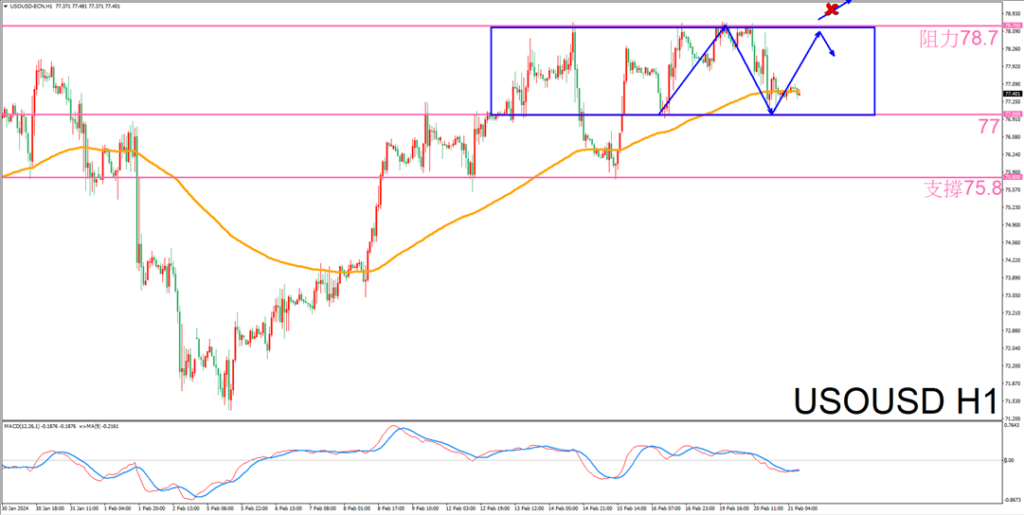 操作建议:多单:77.0-77.1美元/桶 止损76.7美元/桶之下 止盈78.0-78.1美元/桶