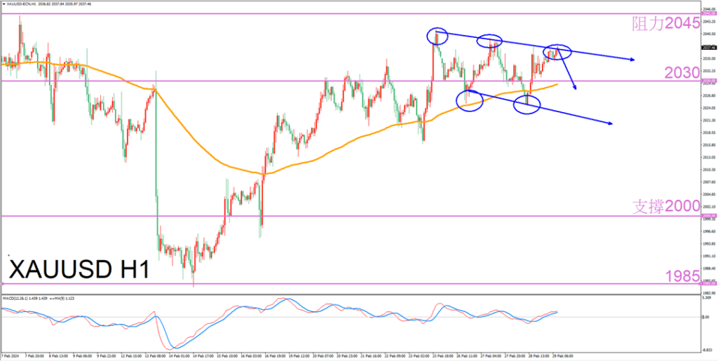 操作建议:空单:2038-2039美元/盎司 止损:2043美元/盎司之上 止盈:2030-2031美元/盎司