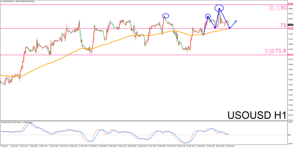 操作建议:多单:77.9-78.0美元/桶 止损77.6美元/桶之下 止盈78.6-78.7美元/桶