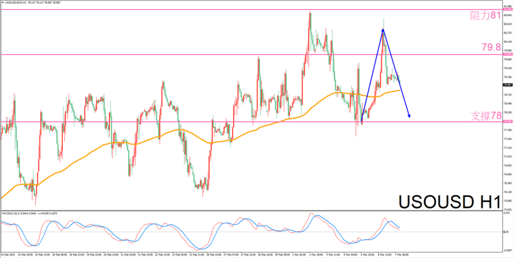 操作建议:空单:79.1-79.2美元/桶 止损79.5美元/桶之上 止盈78.2-78.3美元/桶