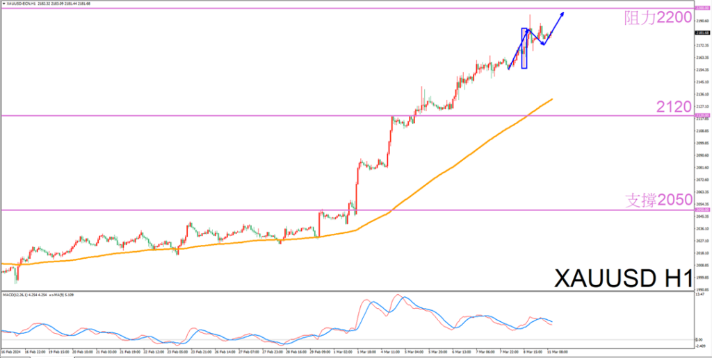 金价上周五晚间进一步走高,又再度刷新了历史高点,短线演变成震荡上行,晚间操作继续偏向多方思路,上方注意2200美元/盎司,考虑到今日晚间没有重要数据,操作上点位可以拉近一些。