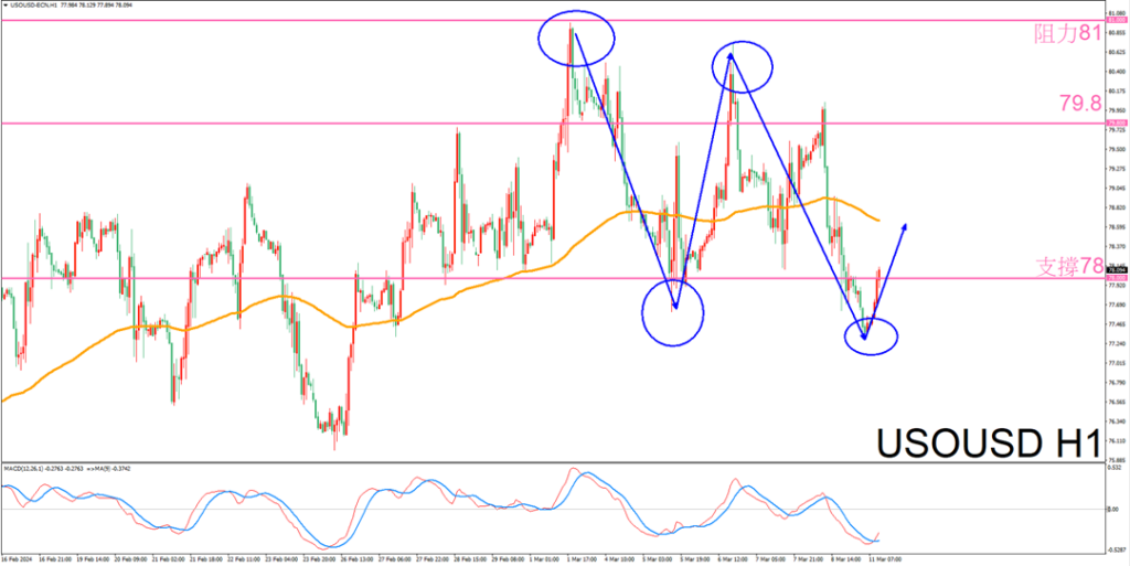 操作建议:多单:78.0-78.1美元/桶 止损77.5美元/桶之上 止盈79.0-79.1美元/桶