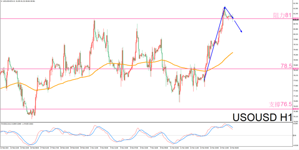 操作建议:空单:80.9-81.0美元/桶 止损81.5美元/桶之上 止盈79.8-79.9美元/桶