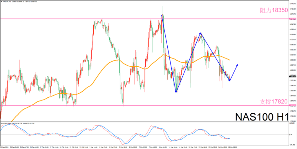 那斯达克昨日晚间延续周三小幅下跌,短线无法站稳18000,今日晚间关注指数是否能重新站回18000,做为多方是否有延续进攻的确认信号,操作上以突破多为主。