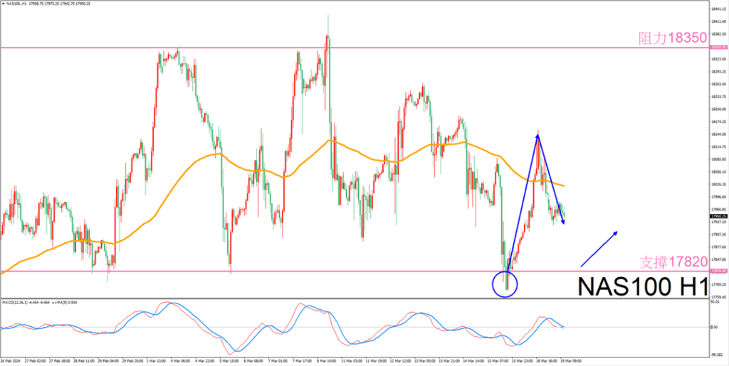 那斯达克昨日晚间从低点反弹,短线虽然突破了前一个转折高点,不过整体还是偏向震荡,操作上可以保守一些,等价格有再次跌至支撑在进场。