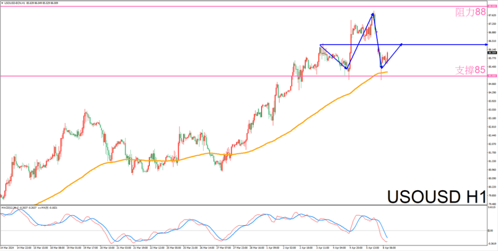操作建议:多单:85.8-85.9美元/桶 止损85.5美元/桶之下 止盈86.5-86.6美元/桶