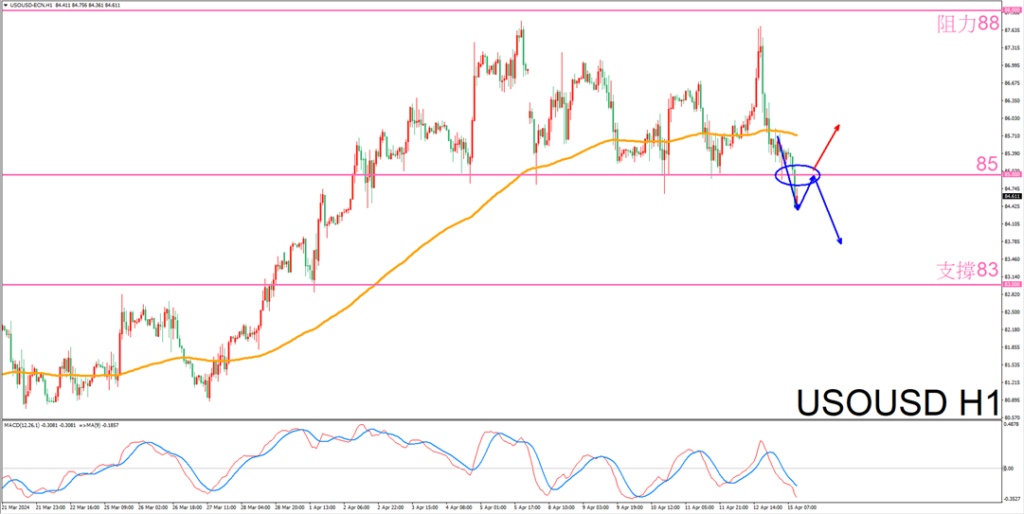 操作建议:空单:84.9-85.0美元/桶 止损85.5美元/桶之上 止盈83.9-84.0美元/桶