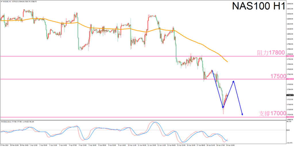那指昨日晚间继续走低,下方已经要逼近17000关口,今日操作上维持空方思路,都是等待反弹后进场空单,上方可以观察此前的停顿点17500,有触及该位置再进场。